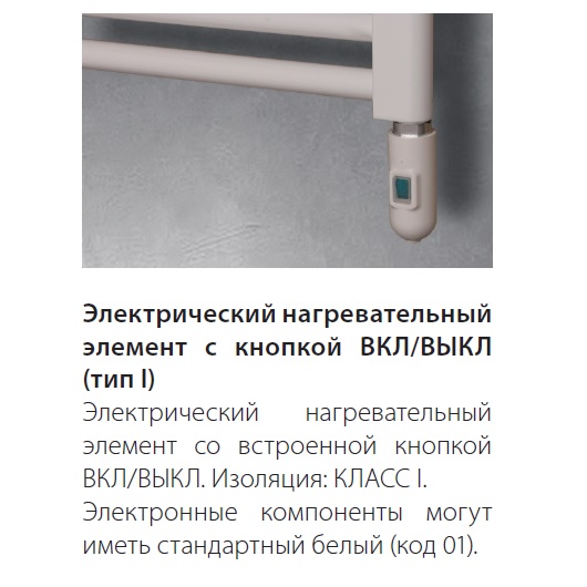 (тип I) Электрический нагревательный элемент со встроенной кнопкой ВКЛ/ВЫКЛ.