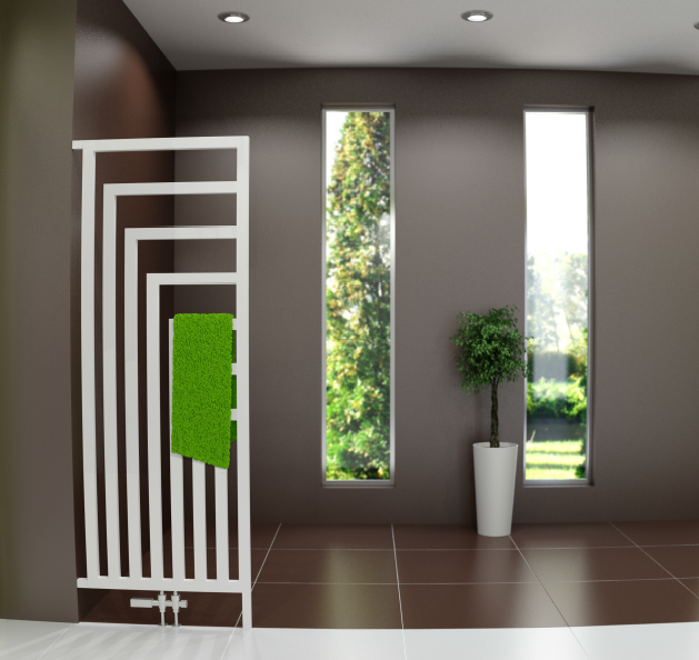 Дизайн-радиатор Terma Angus DW – интересная модель полотенцесушителя, которая может служить панелью, разделяющей помещение на зоны за счет монтажа не на стену, как привычные нам модели полотенцесушителей, а перпендикулярно стене. Это дает дополнительные возможности для дизайнеров, позволяя зонировать помещение — самый большой полотенцесушитель Terma Angus DW 1780 х 680 мм вполне справляется с ролью декоративной перегородки, которая к тому же является источником тепла в помещении и позволяет с легкостью отказаться от водяного полотенцесушителя. Самый маленький в этой серии - Terma Angus DW 1140 х 360 мм. Дизайн-радиатор Terma Angus DW с нижним подключением может быть подключен к закрытому контуру водоснабжения или, при установке на него нагревательного элемента и блока управления, выполнять роль чисто электрического радиатора-полотенцесушителя. На квадратных в сечении трубках, составляющих орнамент из вертикально ориентированных прямоугольников, прекрасно будут смотреться темные тона из специальной палитры Terma, покрашенный же в светлые цвета дизайн-радиатор Terma Angus DW на тонкой высокой ножке, упирающейся в пол - становится более «легким», невесомым. Прямоугольный дизайн и сечение трубок Terma Angus DW предполагает использование умного квадратного же по форме блока управления Terma KTX 3 или Terma KTX 4. Дополнительным изящным и в то же время практичным аксессуаром станут крючки Zip V хромированные.