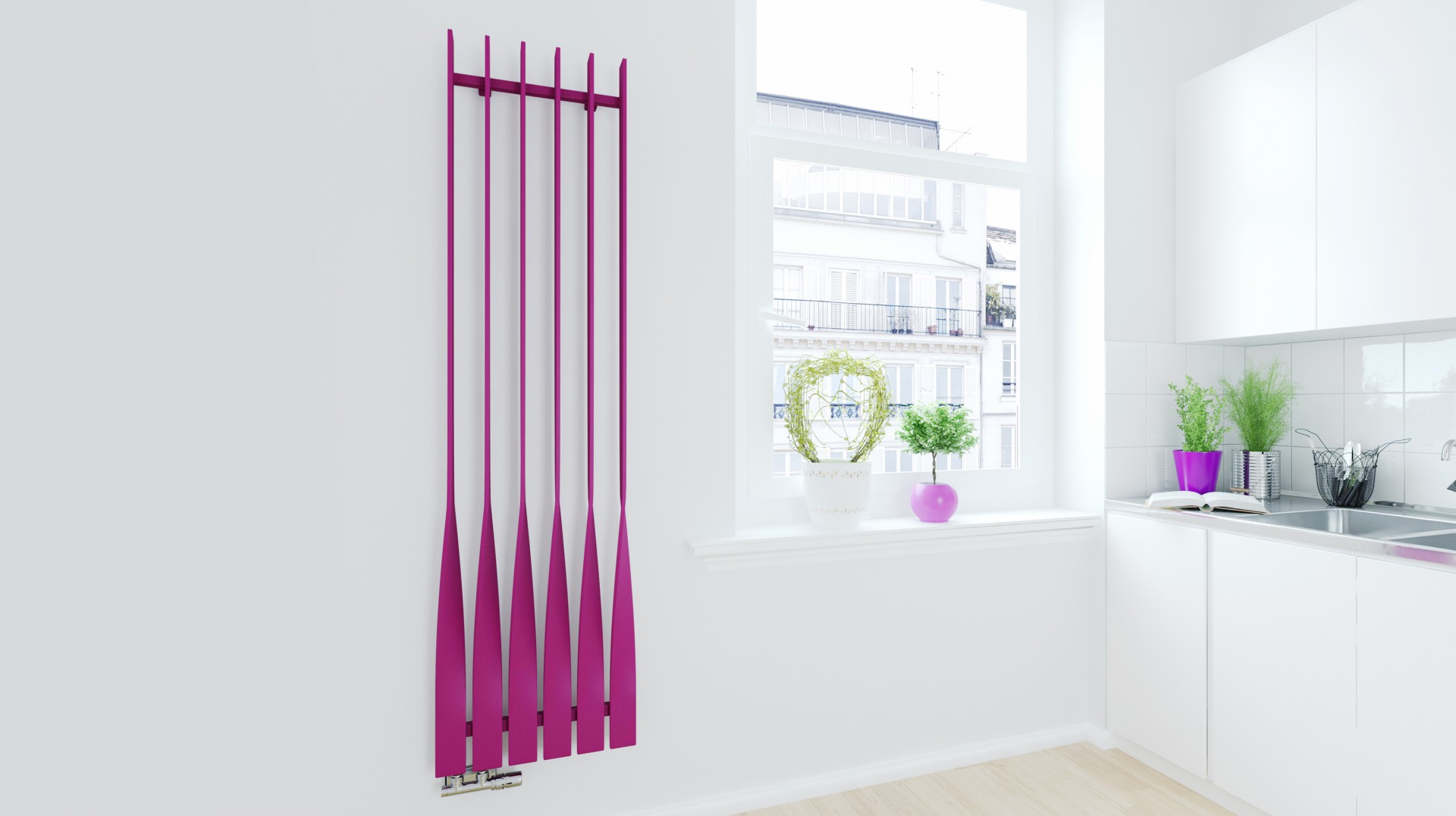 Дизайн-радиатор Terma Cyklon V настолько необычен, что каждый увидит в нем что-то свое. При этом радиатор Cyklon Vertical весьма практично распоряжается площадью стены: три размера по ширине - не займут полезное пространство, радиатор сильно вытянут по высоте. Пять типоразмеров, огромный выбор цветов RAL или специальных особых цветов из палитры Terma. При установке Terma Cyklon V в ванную комнату украсят радиатор и сделают его еще и полотенцесушителем крючки Terma Kuka.