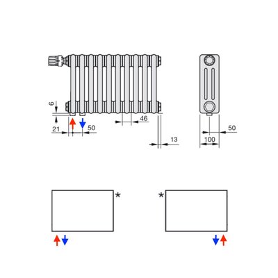 Радиатор поставляется специальный цвет TechnoLine (TL) со встроенным термостатическим клапаном.
