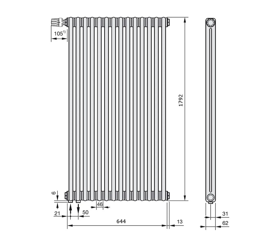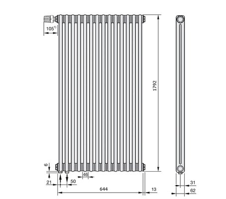 | Серия | Радиаторы стальные трубчатые Zehnder CH 3180 3-трубки нижнее подключение |